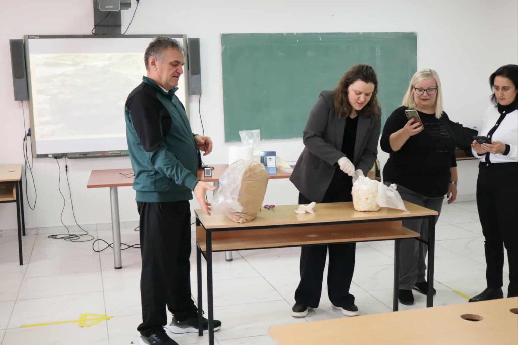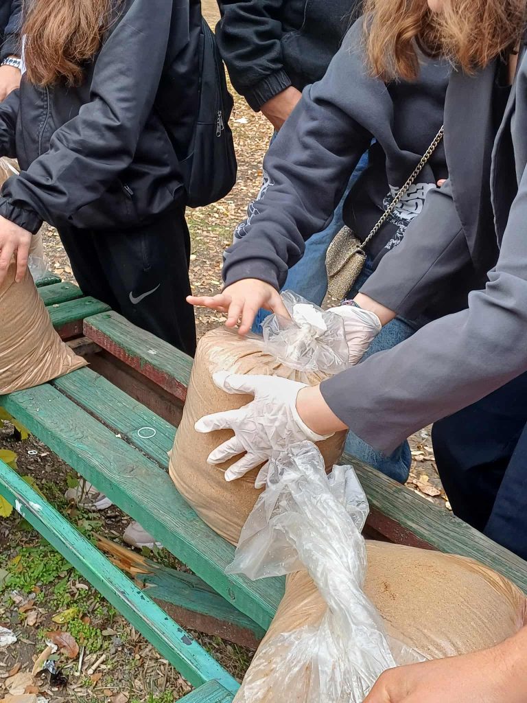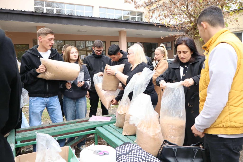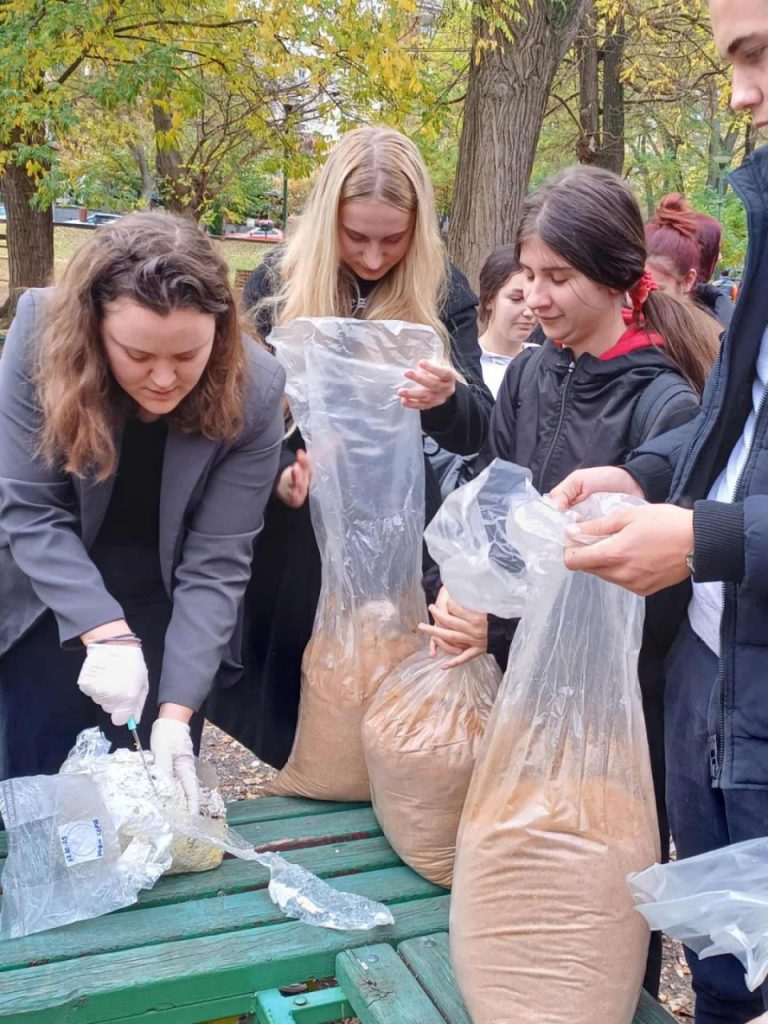 Во претходно пастеризирани вреќи со струготини беше ставен мицелиум, кој во наредниот период ќе прерасне во вкусни и хранливи печурки. Учениците со голем интерес учествуваа во сите фази од процесот.